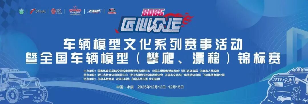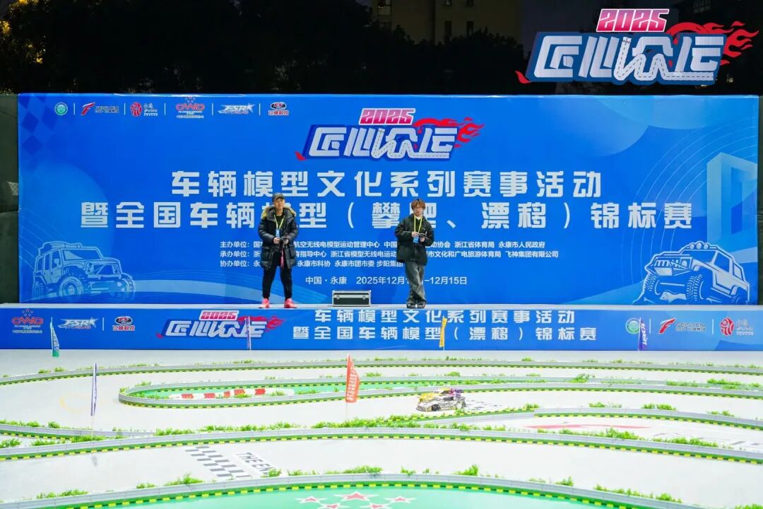 12月12日至15日由国家体育总局航空无线电模型运动管理中心、中国车辆模型运动协会、浙江省体育局、永康市人民政府联合主办,浙江省社会体育指导中心、浙江省模型无线电运动协会、永康市文化和广电旅游体育局和飞神集团有限公司共同承办,并得到永康市教育局、永康市科协、永康市团市委、步阳集团等单位协办的2025“匠心众运”车辆模型文化系列赛事暨全国车辆模型(漂移攀爬)锦标赛在永康飞神赛车场成功举办!