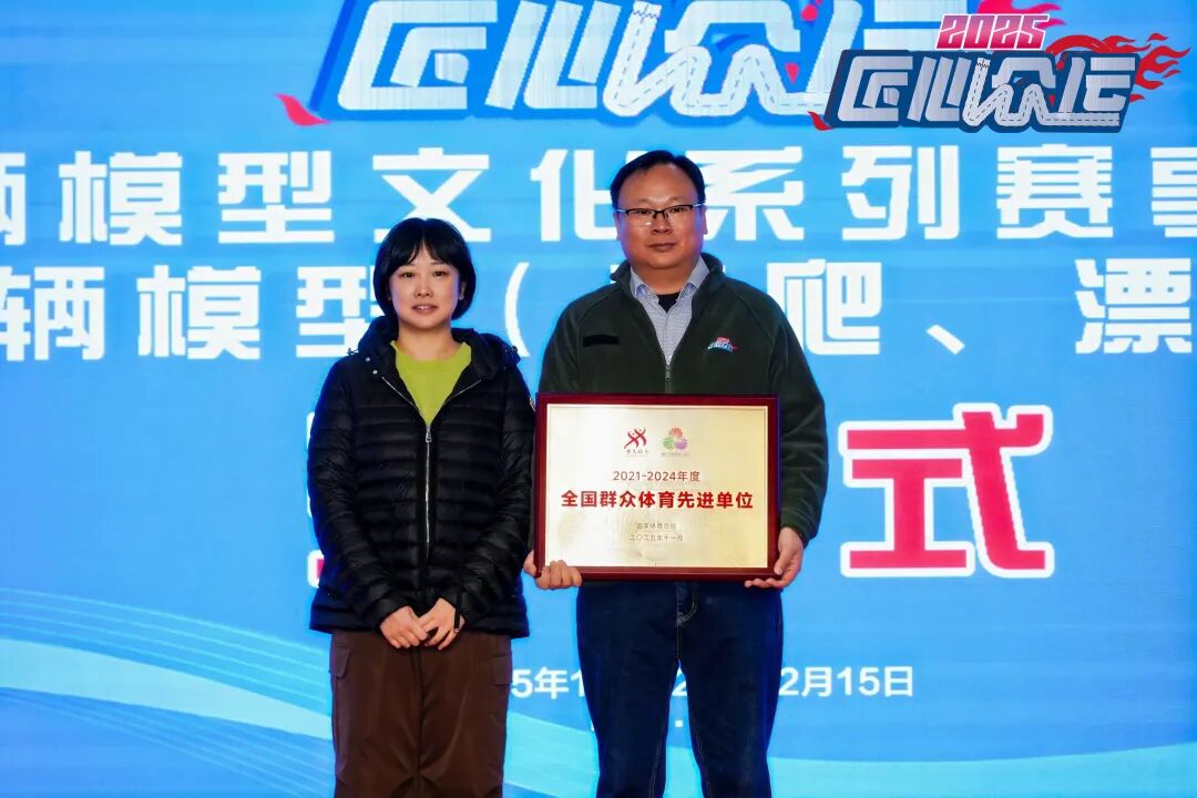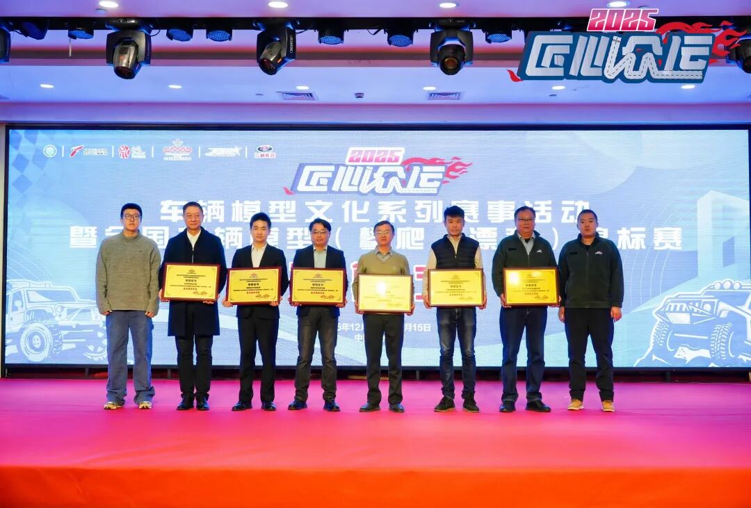 12月14日的开幕式上,现场还为2025年“匠心众运”车辆模型文化系列赛事全国6站“优秀组织单位”及浙江飞神车业有限公司“2021-2024年度全国群众体育先进单位”授牌。
