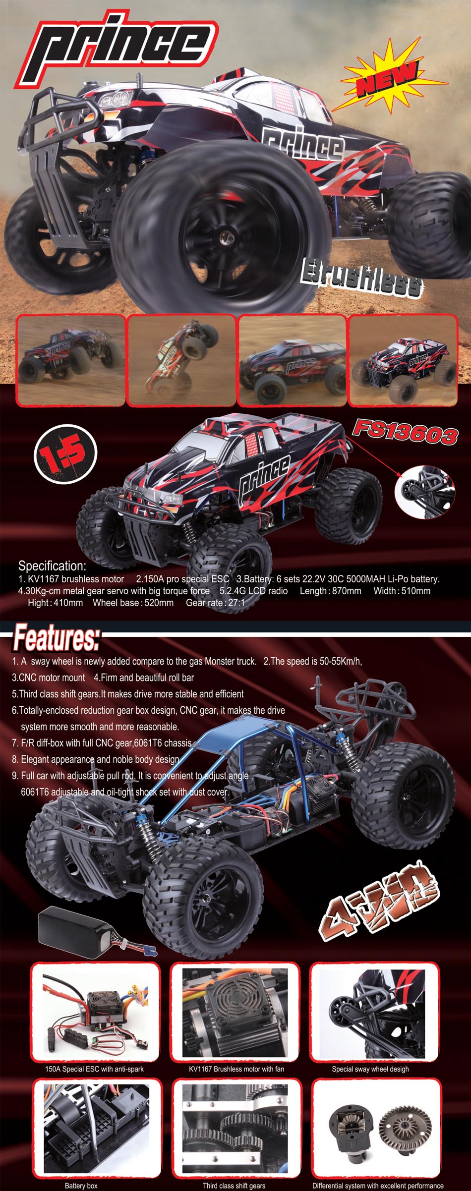 Products > 1/5 Brushless Truck ( FS13603 )